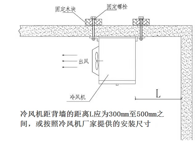 4、冷風機和背墻之間的距離為300-500mm,或按冷風機廠家提供的尺寸;